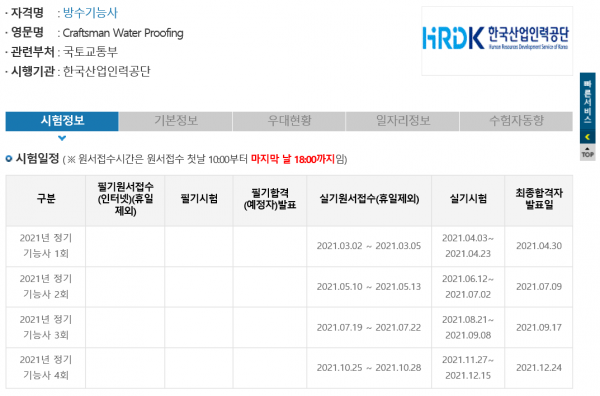 -행사소식- 2021년 방수기능사 시험일정안내 페이지 정보 작성자 삼미산업 작성일21-06-02 17:00 조회572,122회 댓글109건 관련링크 이전글 다음글 목록 본문 방수기능사 시험 접수기간이 위와 같습니다. http://www.q-net.or.kr 자세한 안내는 홈페이지 들어가시면 알수있으니 많은 관심 바랍니다.^^ 댓글목록 등록된 댓글이 없습니다. 이전글 다음글 목록